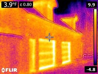The photos can be somewhat alarming to look at, as if energy is literally pouring out of this house! But remember, we are seeing the results of a 16 +/- degree Fahrenheit thermal range in the example photo.